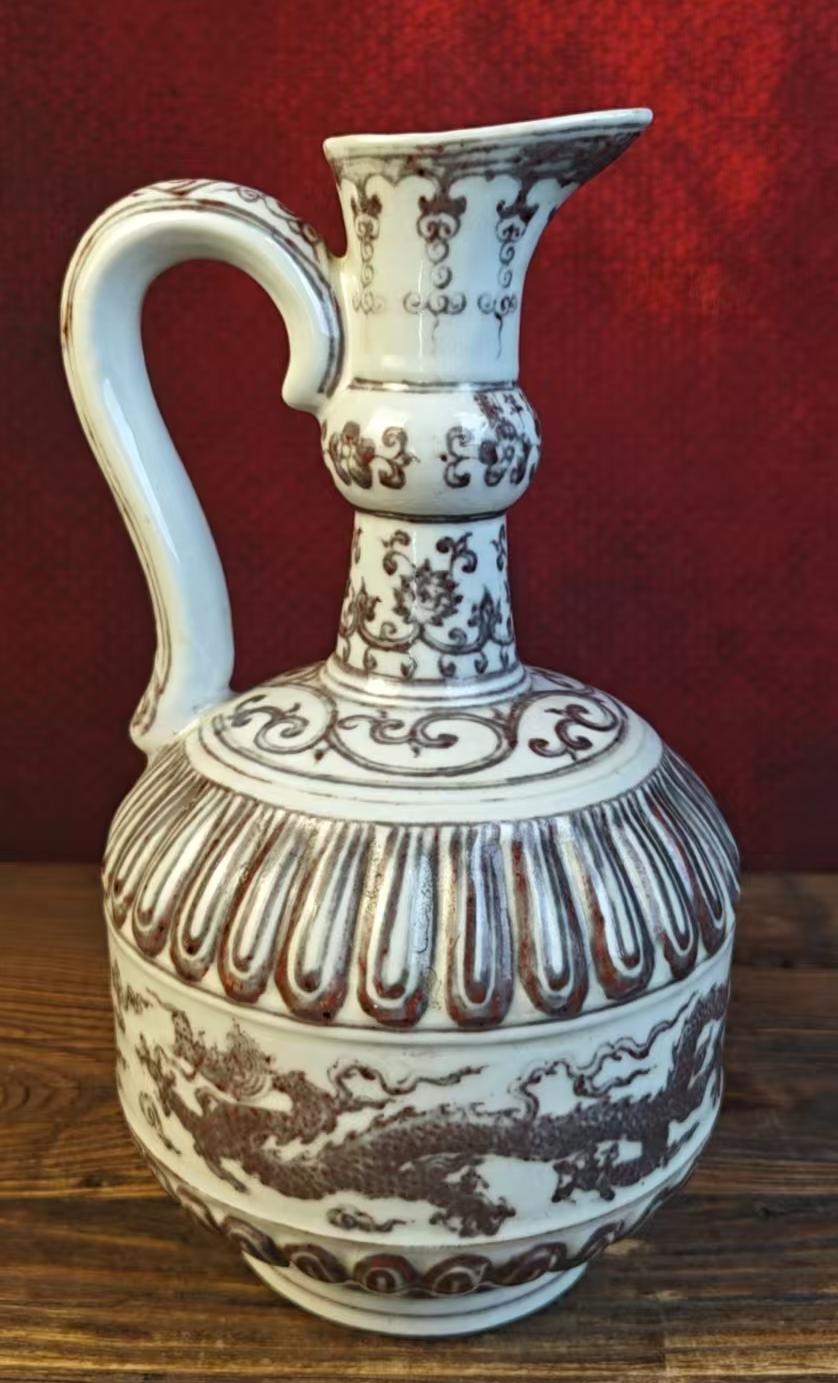 明宣德釉里红云龙纹花浇