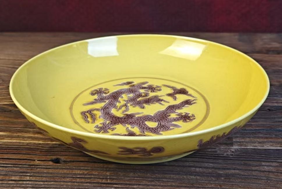 名称:明弘治黄地紫龙纹赏盘