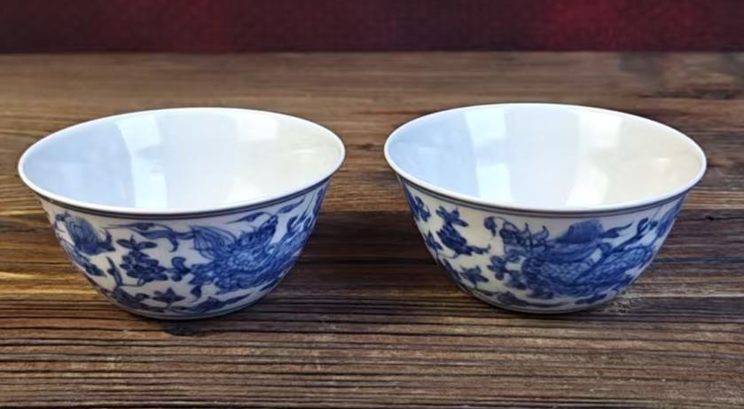 名称:明成化青花穿花龙纹卧足杯