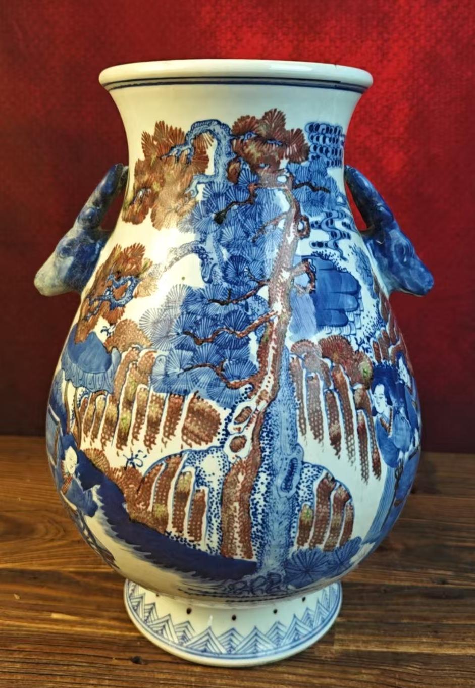 名称:清康熙青花釉里红人物纹鹿头尊