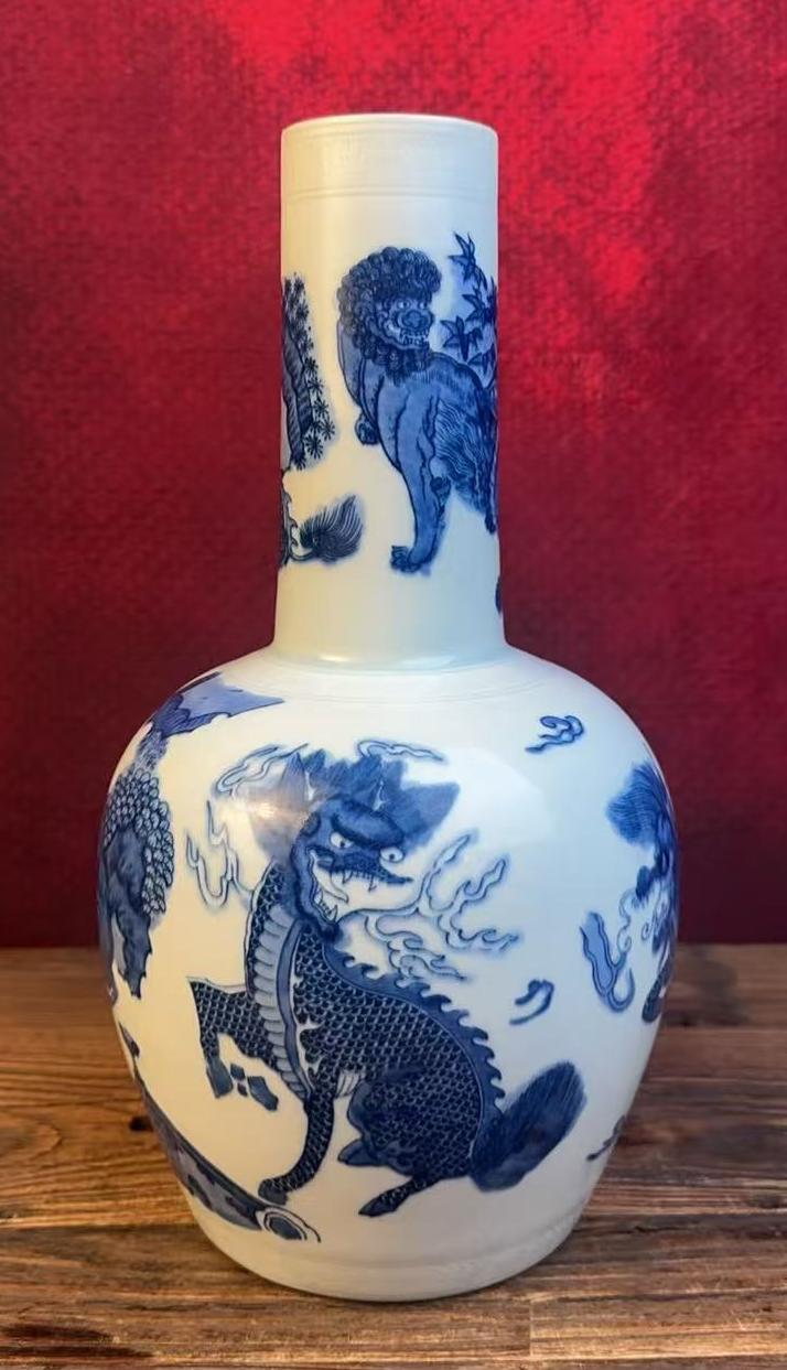 名称:清康熙青花瑞兽纹直口瓶