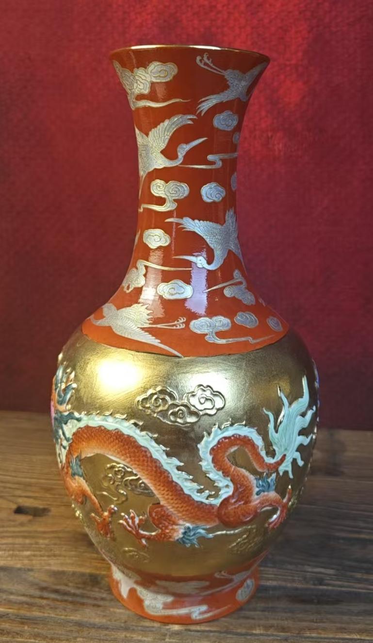 名称:清雍正粉彩描金浮雕云龙纹长颈瓶