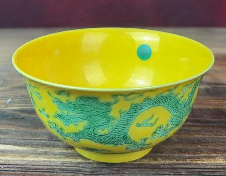 名称:清康熙黄地绿龙纹碗