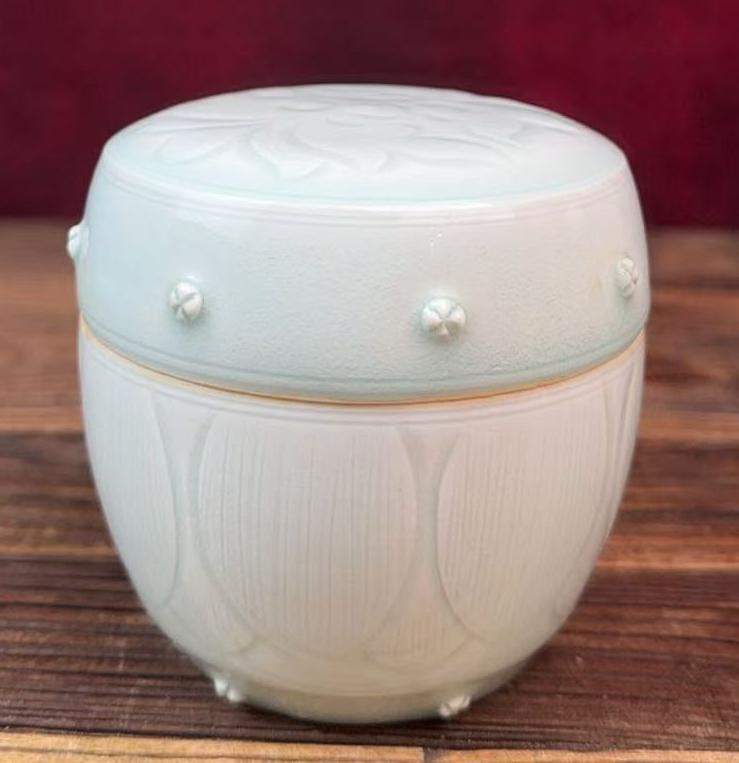 湖田窑刻花鼓钉盖罐