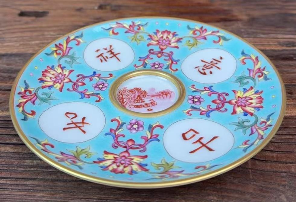 清乾隆洋彩吉祥如意纹盏托