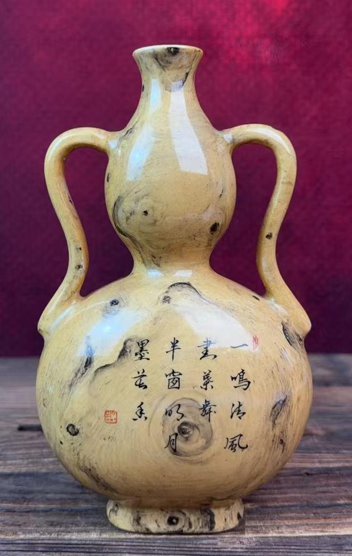 名称:清乾隆仿石纹釉诗词纹绶带耳葫芦瓶