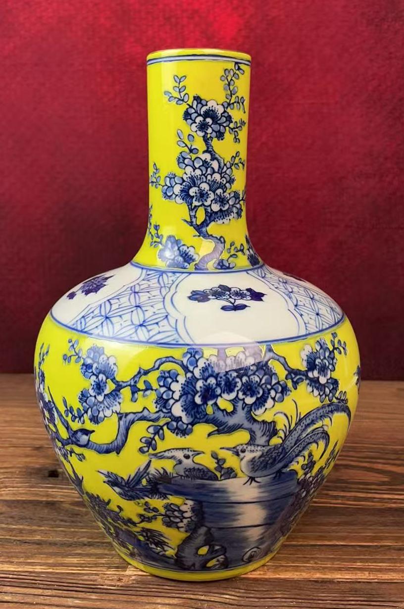 名称:清康熙黄地青花花鸟纹直口瓶