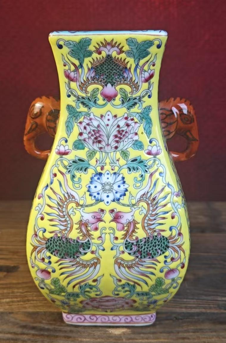 名称:清雍正珐琅彩双凤穿花纹双耳瓶