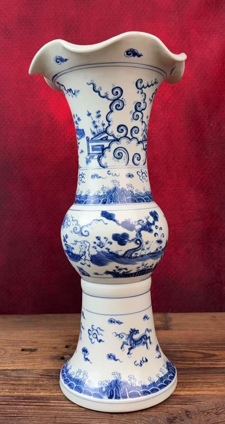 名称:明成化青花山水人物纹花觚