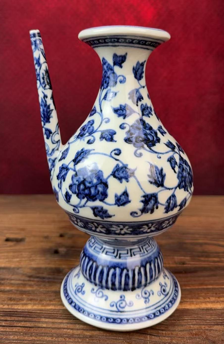 名称:明永乐青花缠枝花卉纹军持