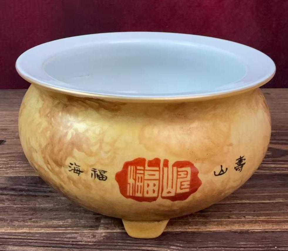 名称:清乾隆矾红云气纹三足炉