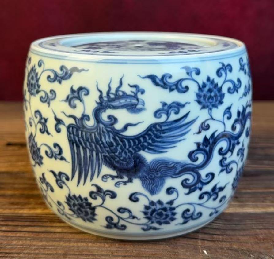 名称:明成化青花凤穿花纹蛐蛐罐