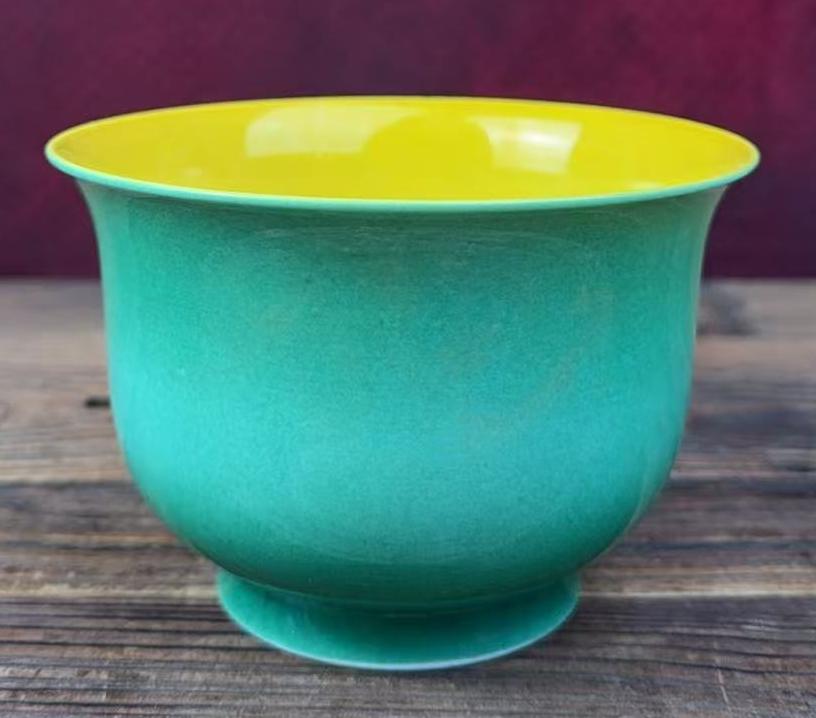 名称:明弘治内黄釉外绿釉杯