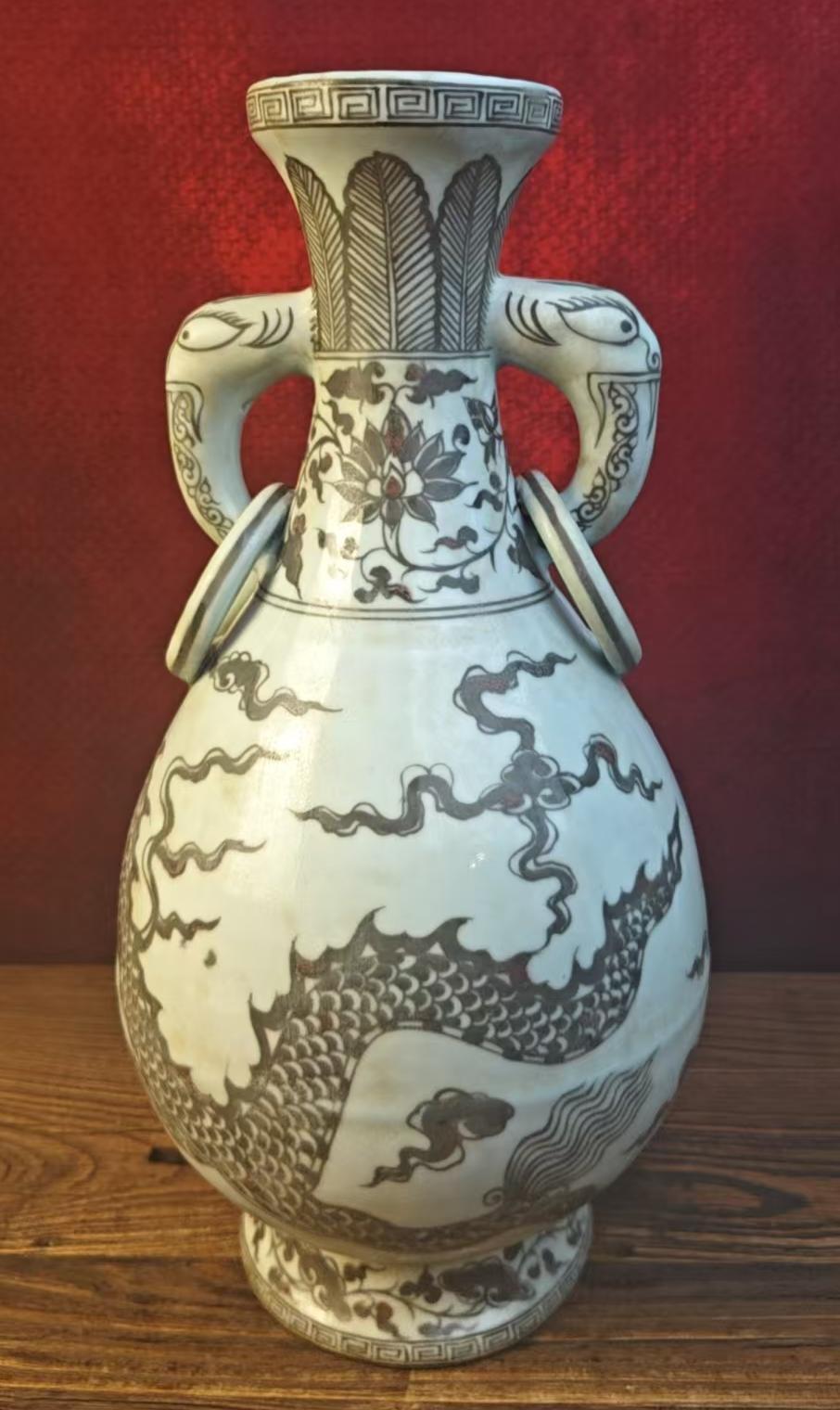 名称:明洪武釉里红云龙纹象耳瓶