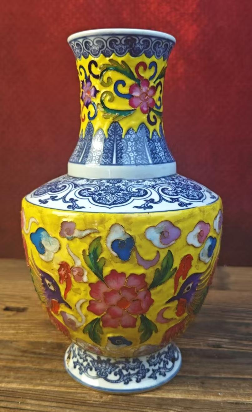 名称:清乾隆青花掐丝珐琅花鸟纹长颈瓶