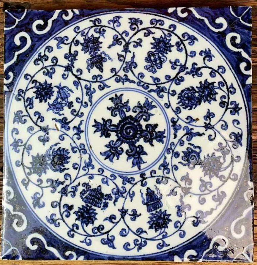 元青花莲托八宝纹瓷砖