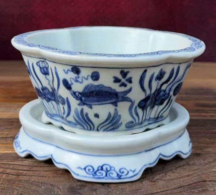 名称:明宣德青花鱼藻纹花盆