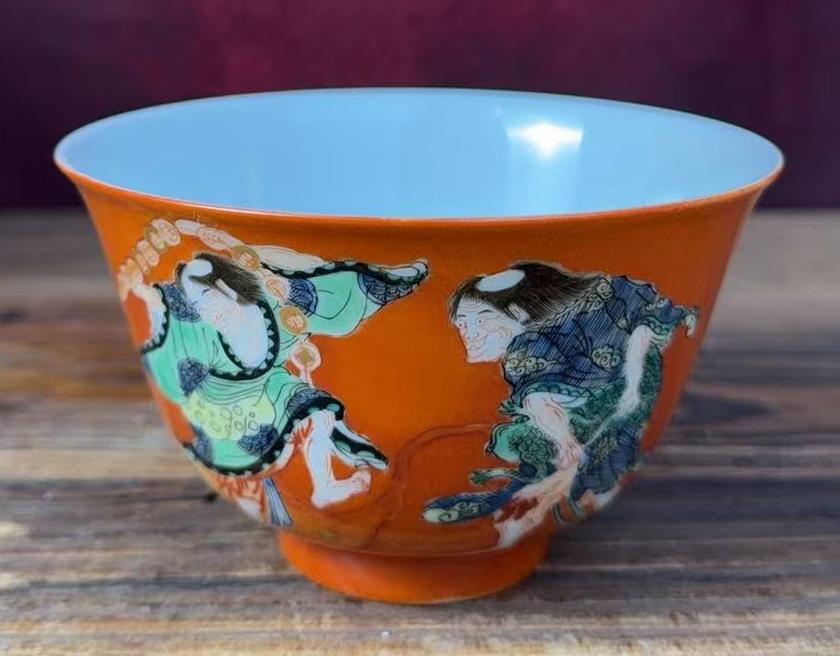 名称:清康熙珊瑚红地五彩人物纹碗
