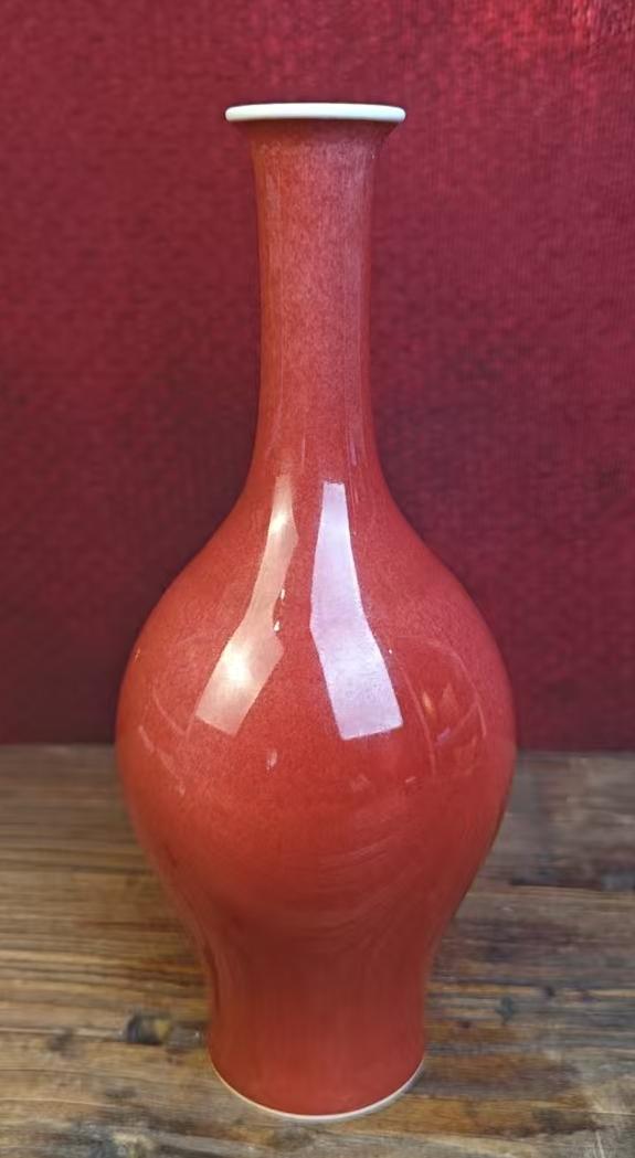 名称:清康熙豇豆红釉长颈瓶