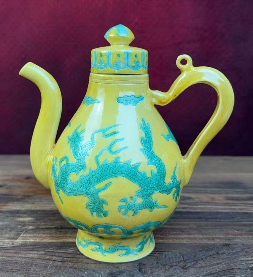 名称:明正德黄地绿龙纹执壶