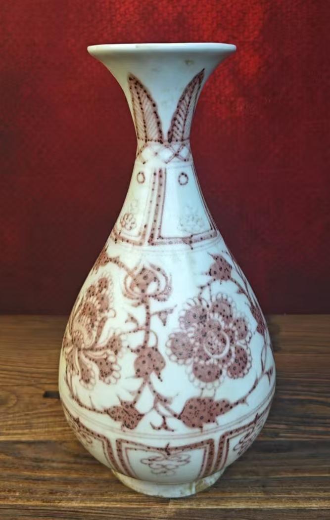 名称:元釉里红缠枝花卉纹玉壶春瓶