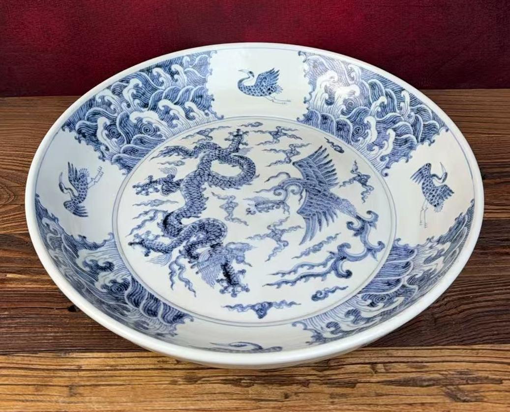 名称:明宣德青花龙凤纹大盘