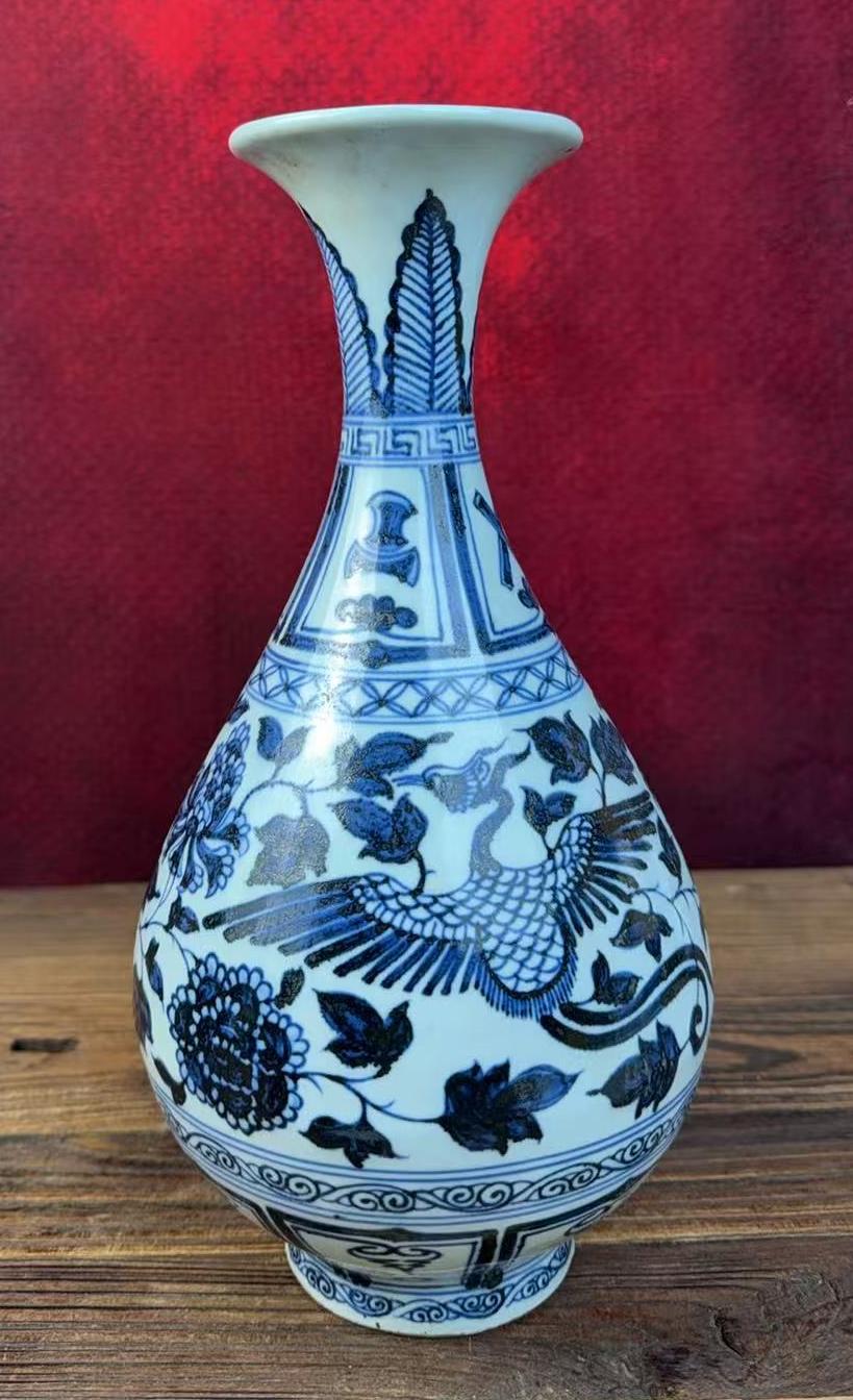 名称:元青花凤穿牡丹纹玉壶春瓶