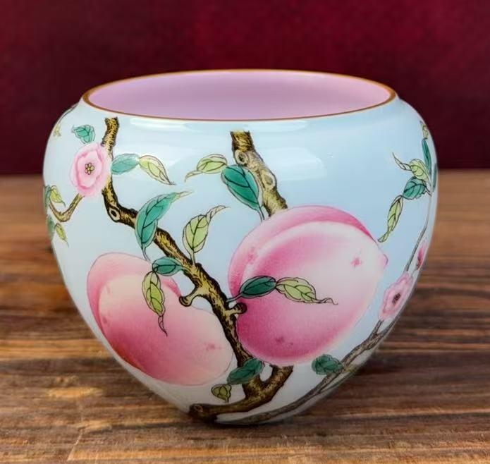 名称:清乾隆天蓝釉粉彩寿桃纹水盂