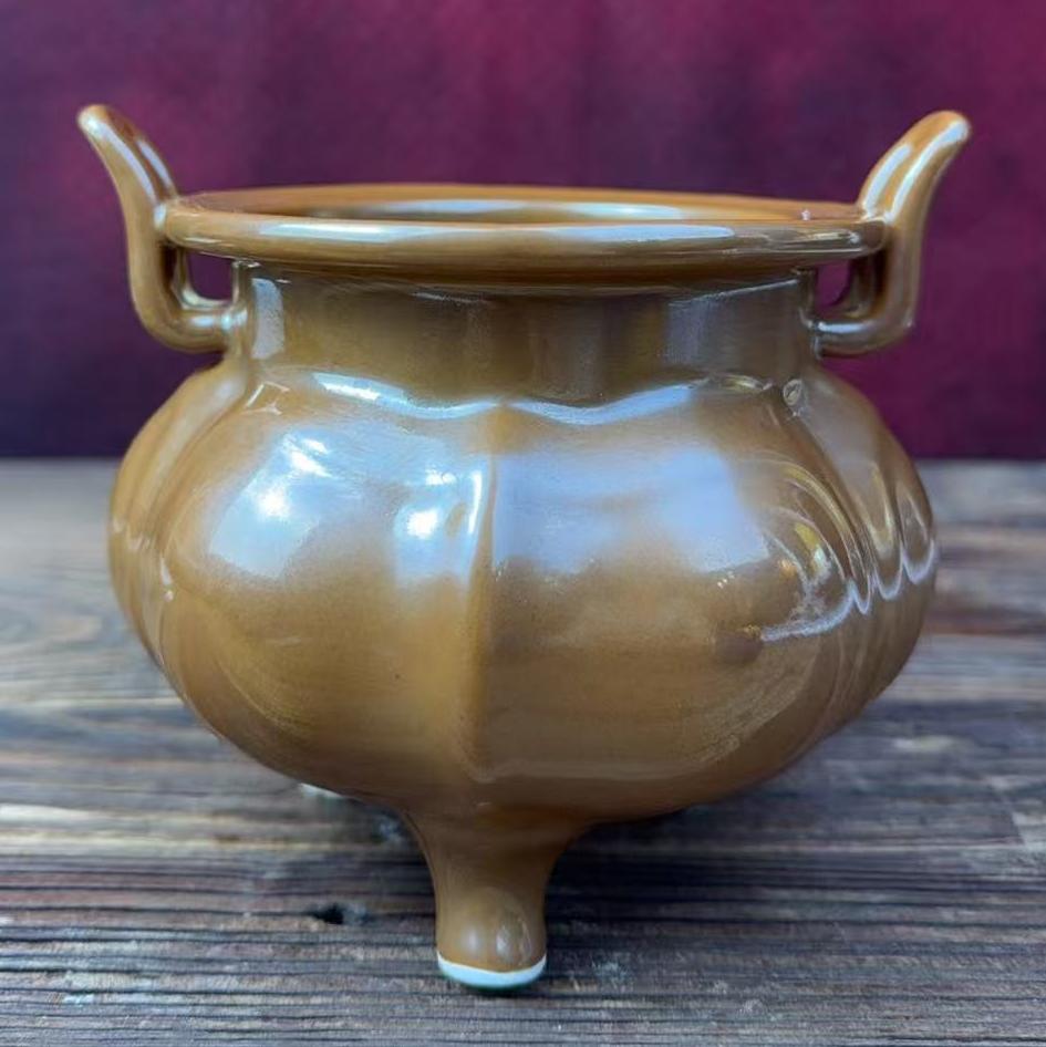 明宣德紫金釉鼎式炉