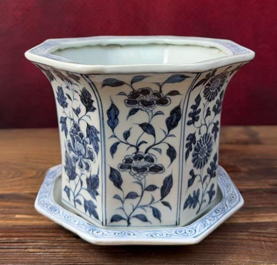 元青花开窗花卉纹八方花盆