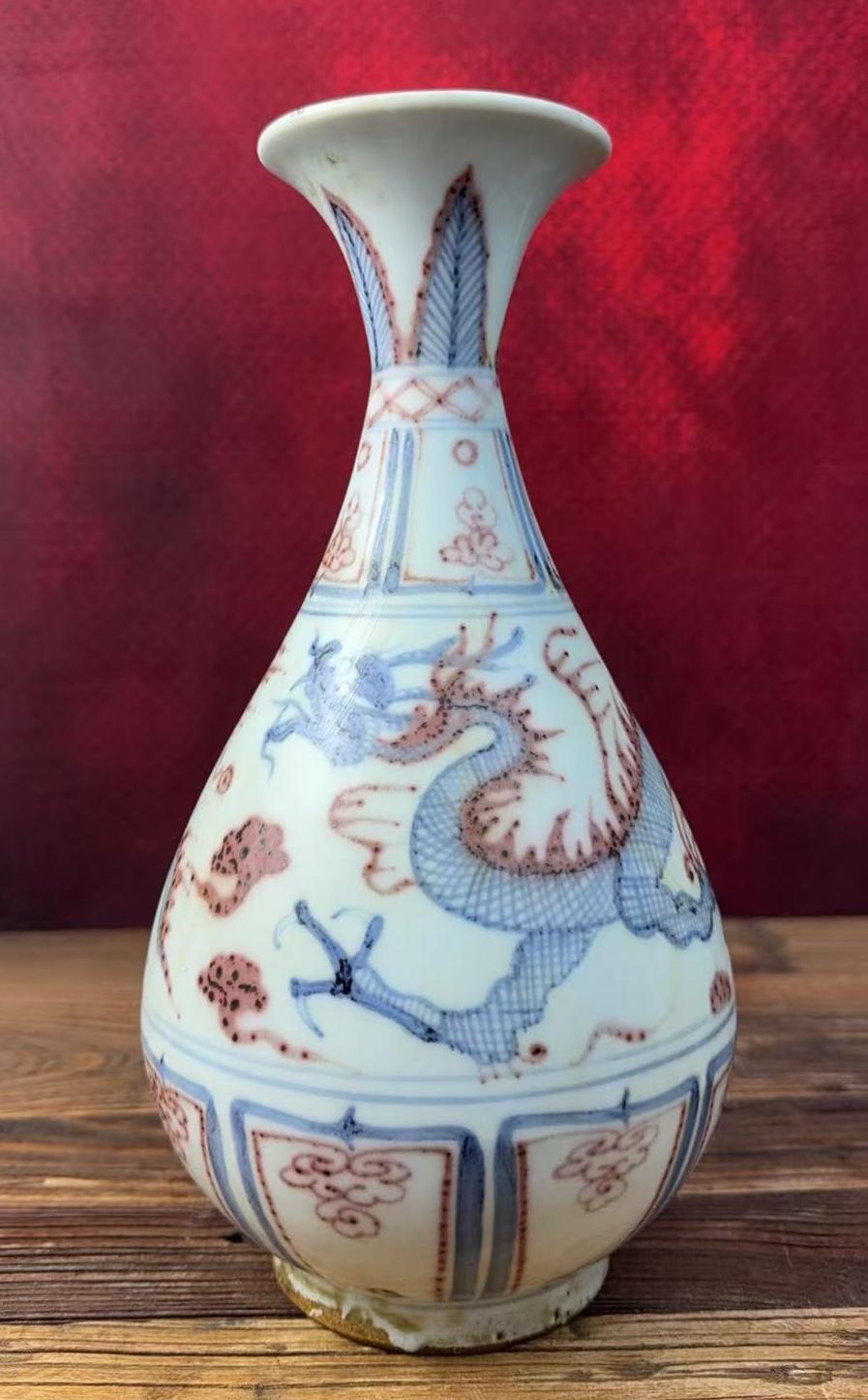 名称:元青花釉里红龙纹玉壶春瓶