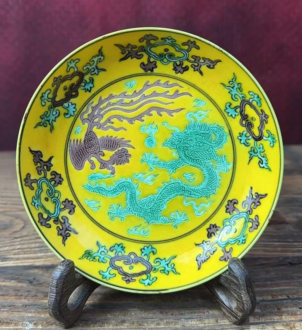 名称:清乾隆素三彩龙凤纹赏盘