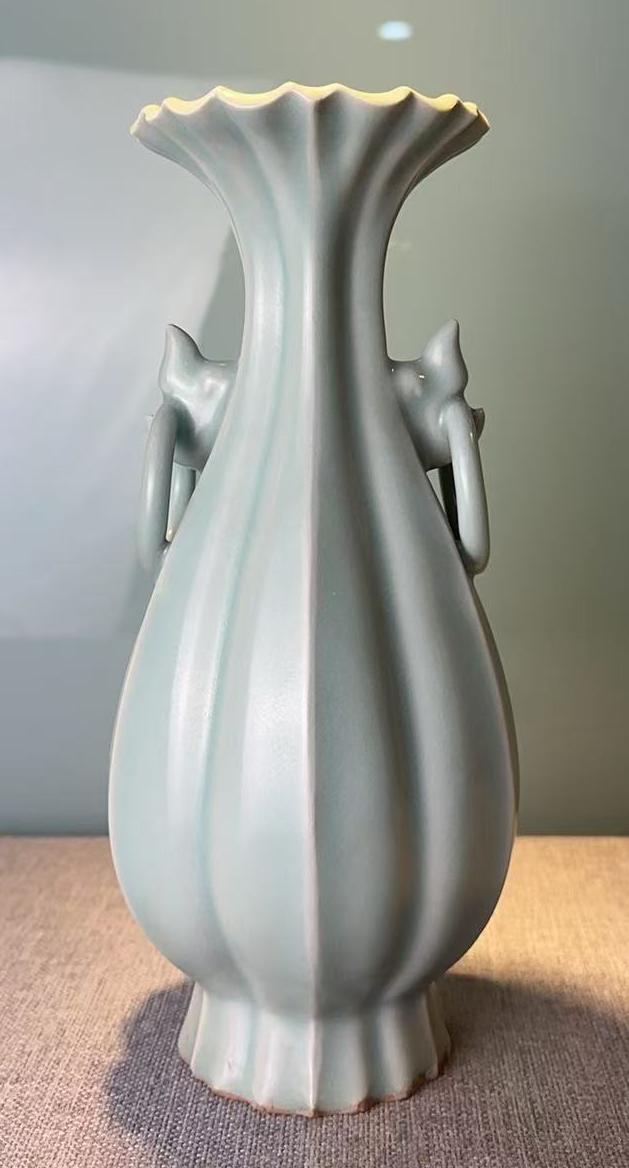 名称:龙泉窑瓜棱双耳瓶