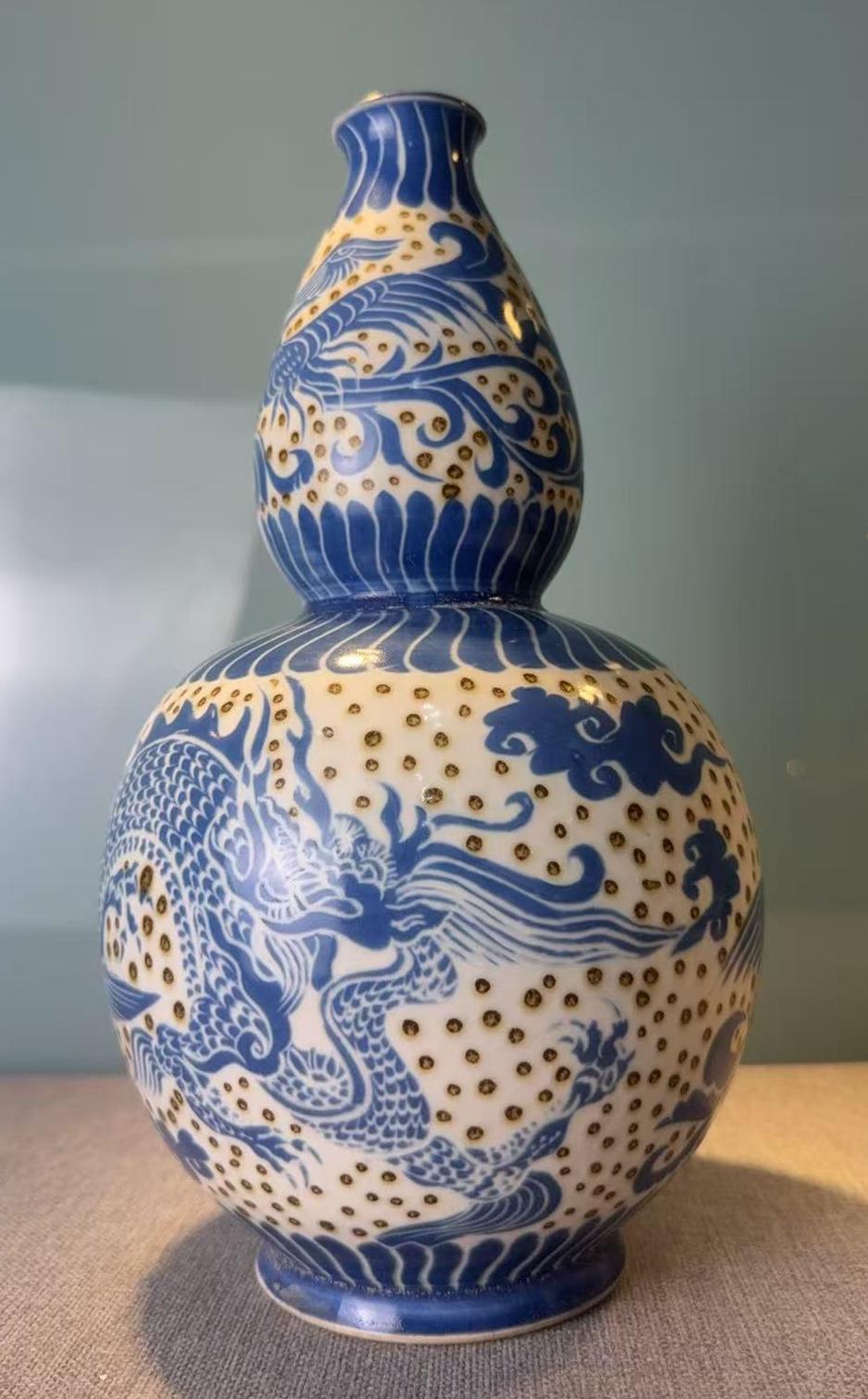 名称:青花点褐彩龙凤纹葫芦瓶