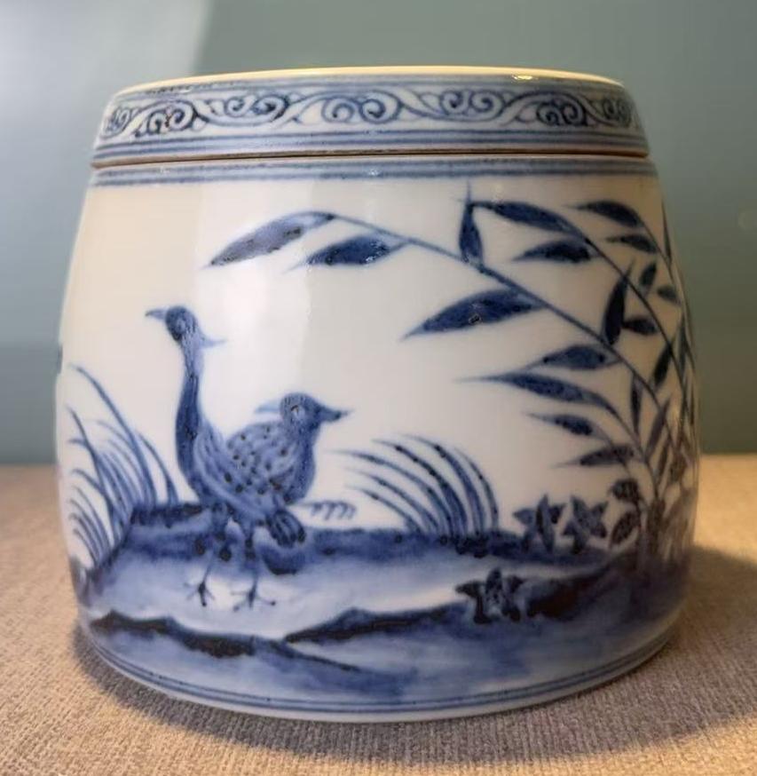 名称:明宣德青花一路连科图盖罐