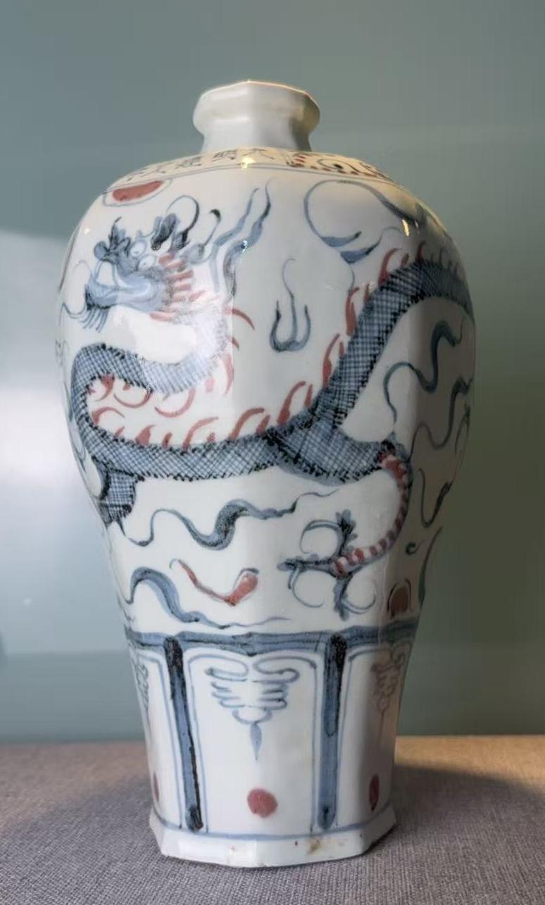 明建文青花釉里红龙纹八方梅瓶