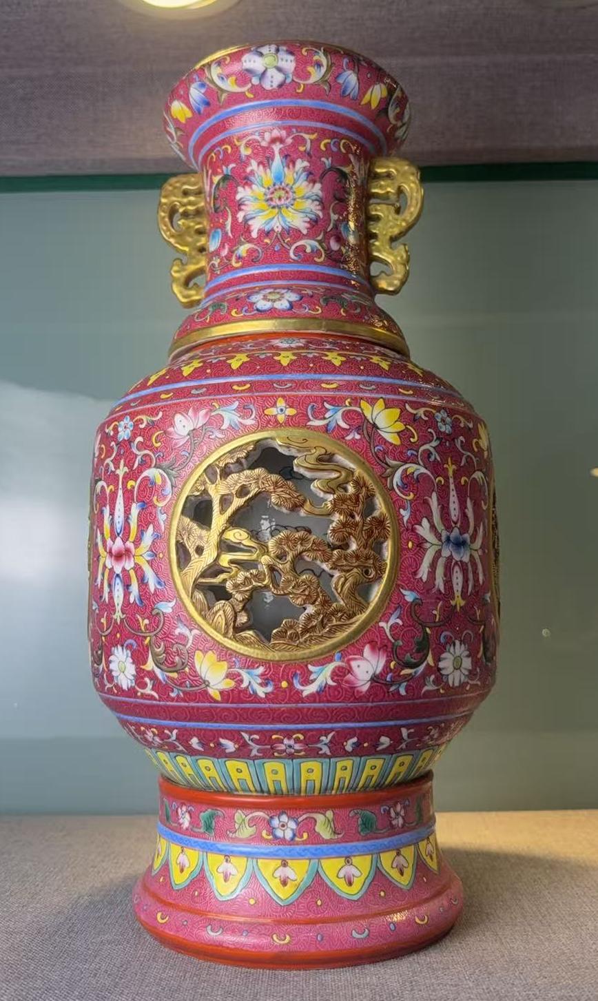 清乾隆珐琅彩描金镂雕花卉纹转心瓶