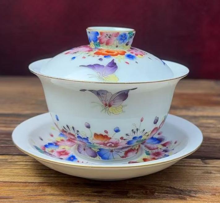 清乾隆珐琅彩花蝶纹盖碗