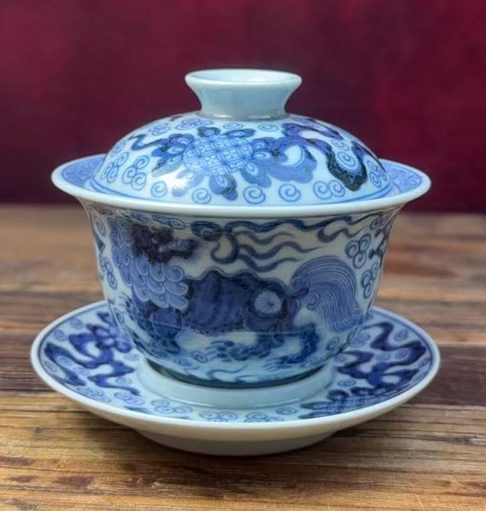 名称:元青花瑞兽纹盖碗