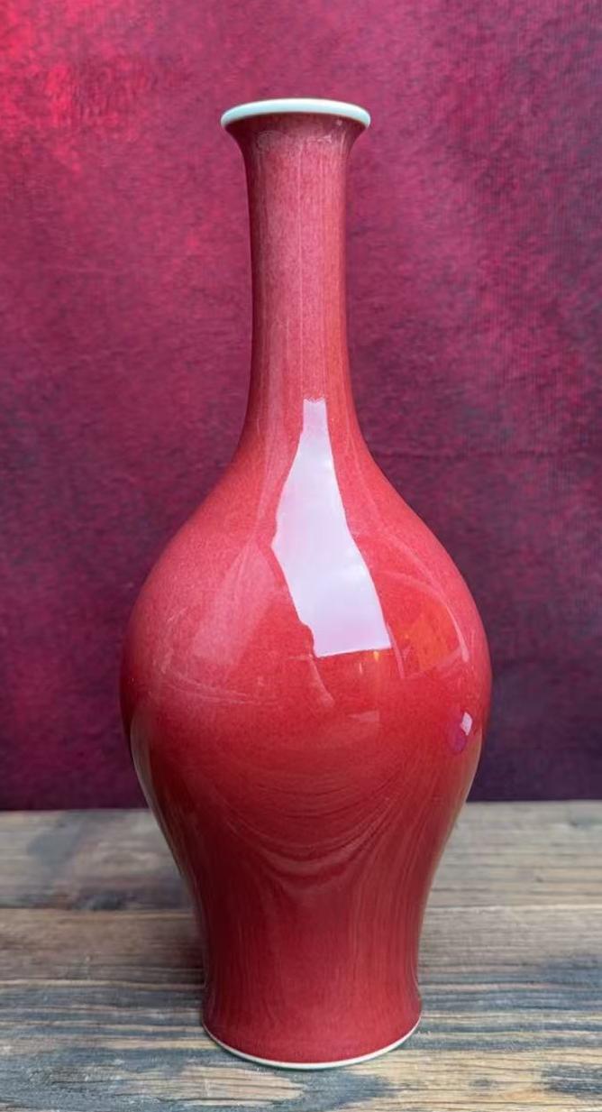 名称:清康熙豇豆红釉长颈瓶