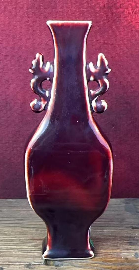 名称:清乾隆郎红釉双耳四方瓶