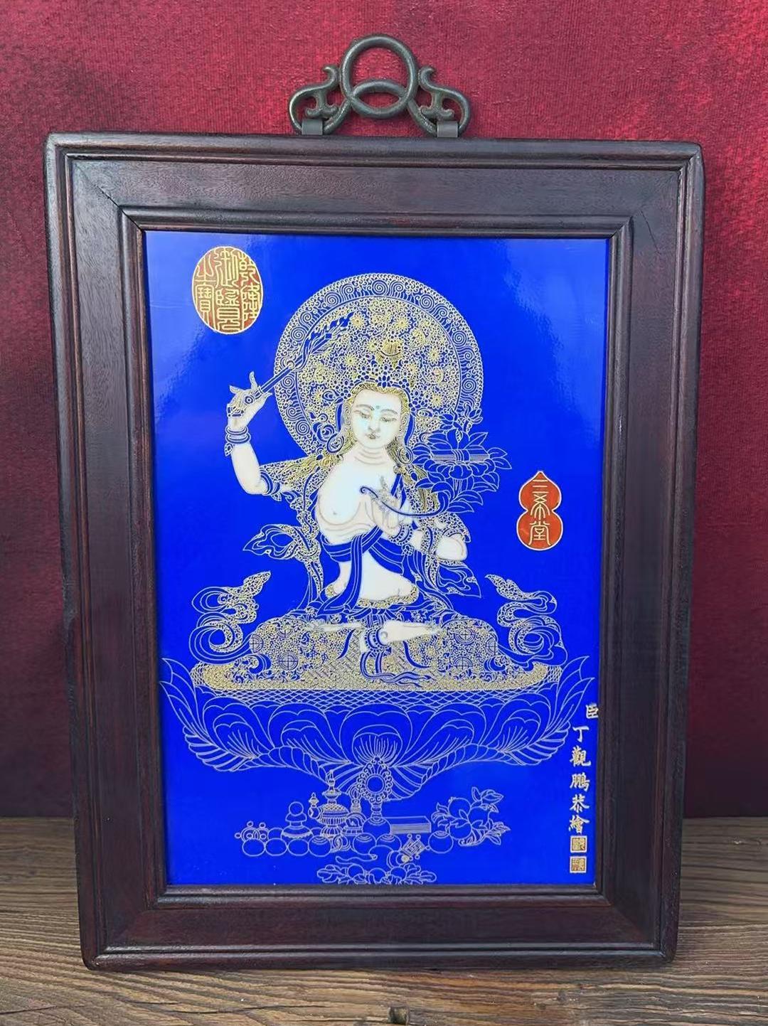 名称:丁观鹏·掐丝珐琅度母瓷板画