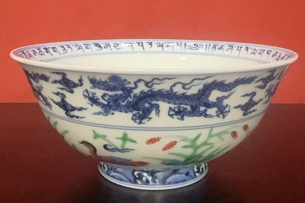 名称:明宣德青花五彩鸳鸯戏莲纹碗