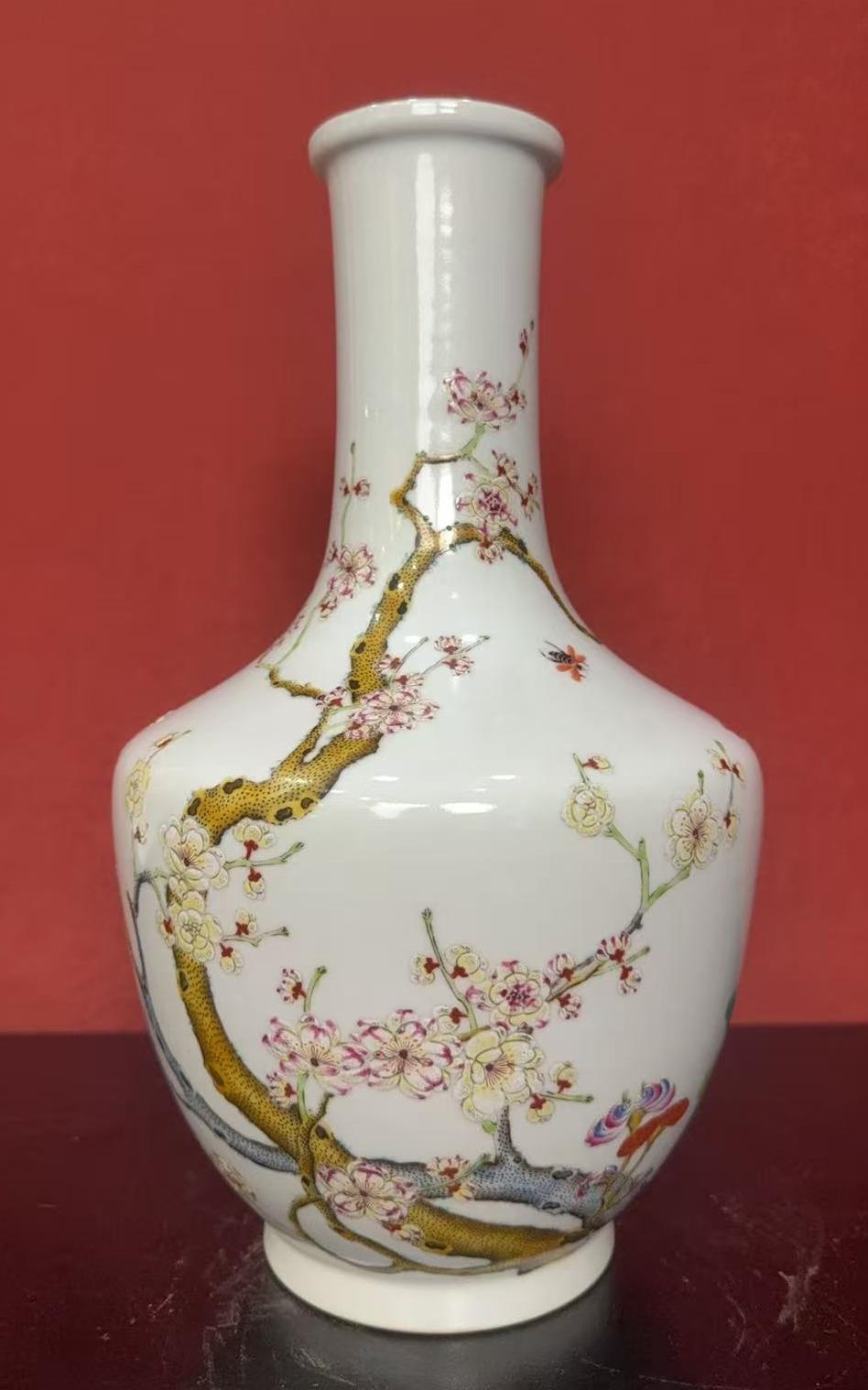 名称:清嘉庆粉彩花卉纹长颈瓶