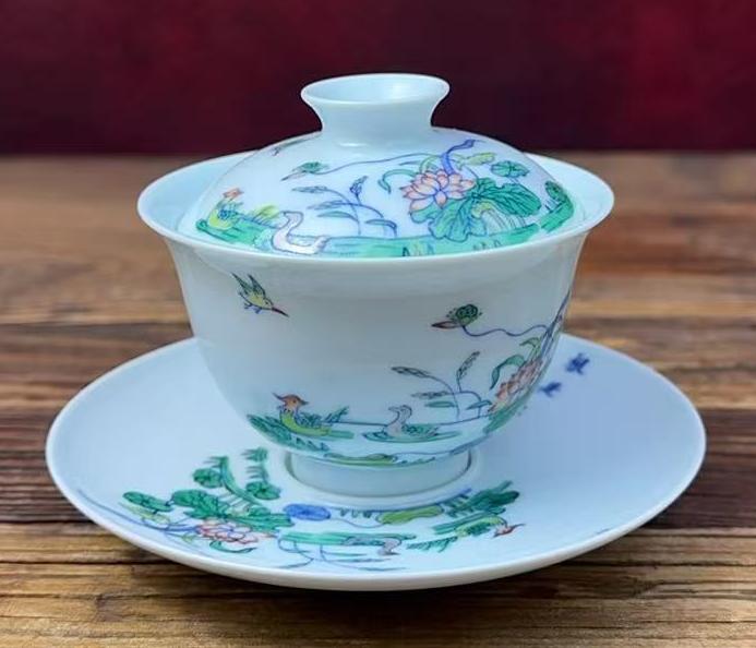 名称:清康熙斗彩鸳鸯戏莲纹盖碗