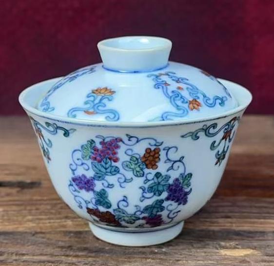名称:清光绪斗彩葡萄纹盖碗