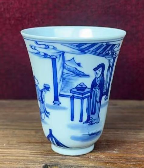 清康熙青花人物纹铃铛杯