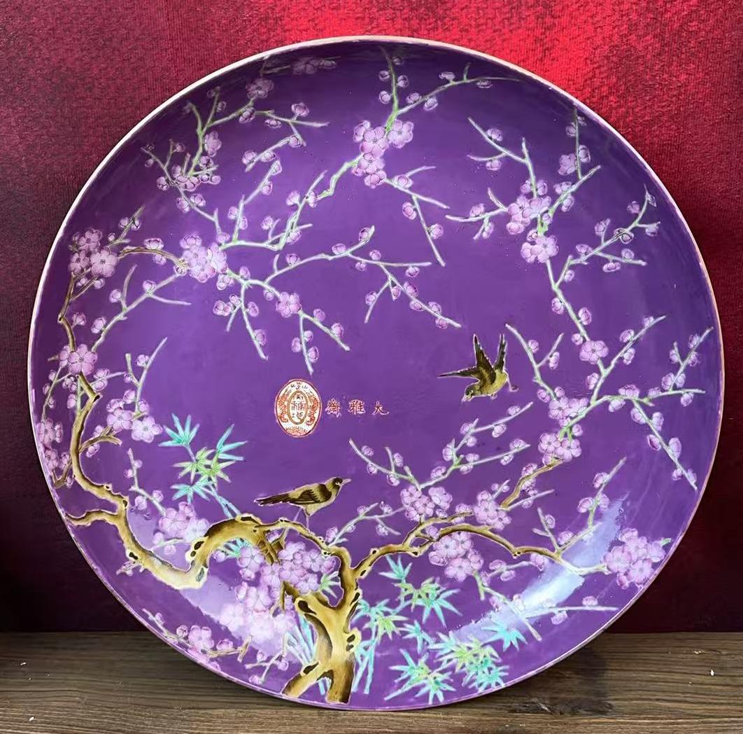 名称:清大雅斋胭脂紫釉粉彩花鸟纹盘