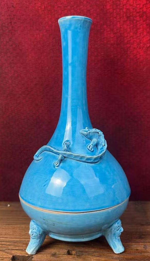 明嘉靖孔雀绿釉盘螭龙纹香薰