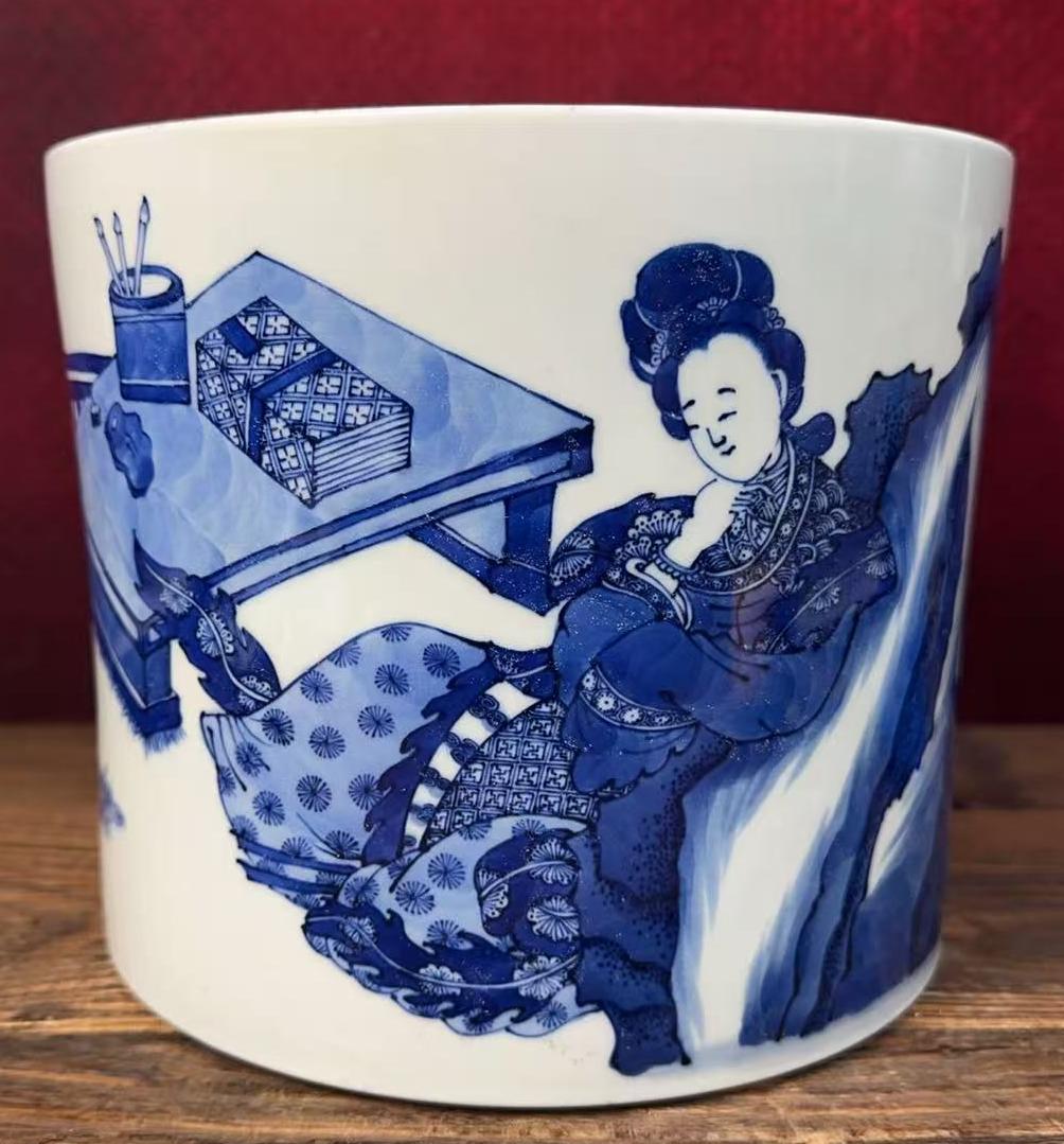 清早期青花人物纹笔筒